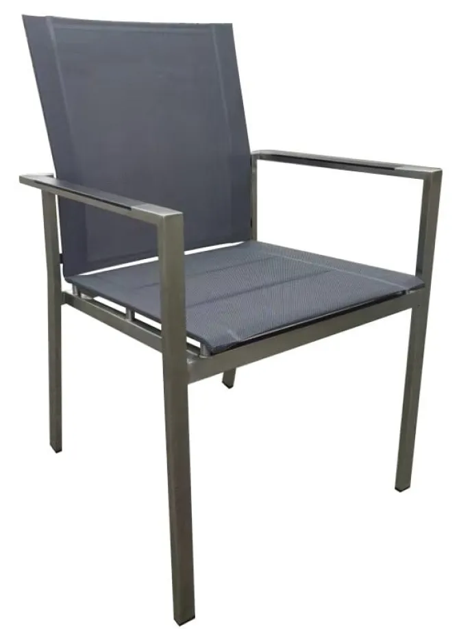 Dankzij het roestvrije stainless steel frame en het UV- en weerbestendige textilene is de stoel perfect geschikt voor alle seizoenen. De hoogwaardige HPL-armleuningen voegen een luxe uitstraling en extra comfort toe.
