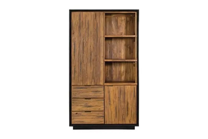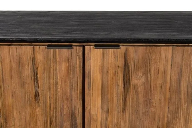 Bent u ook een echte liefhebben van een woonruimte die sfeer en karakter uitstraalt? Dan is de Mountain cabinet de perfecte match voor u! De Mountain cabinet is vervaardigd uit massief geborsteld teakhout, dit geeft de Mountain collectie een warme en sfeervolle uitstraling. De Mountain cabinet voldoet aan de laatste woontrends dankzij het zwart geborstelde teakhouten frame dat in combinatie met het teakhout de collectie een stoer en uniek karakter geeft. De cabinet is niet alleen een echt pronkstuk in uw woonkamer, maar u beschikt ook nog eens over voldoende opbergruimte dankzij de praktische indeling. Er zijn 3 diepe lades voorzien en 2 grote deuren met legplanken, zo kan u voldoende items uit het zicht opbergen. De decoratie stukken die wel gezien mogen worden kan u etaleren in de 3 ruime open vakken.