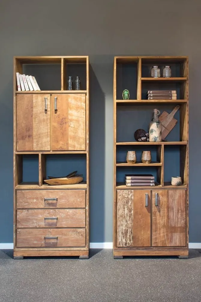 De praktische indeling van deze boekenkast zorgt ervoor dat u beschikt over voldoende opbergruimte. De boekenkast beschikt over 7 open schappen hierin kunt u uw boeken of mooiste spullen etaleren en 2 deuren.
