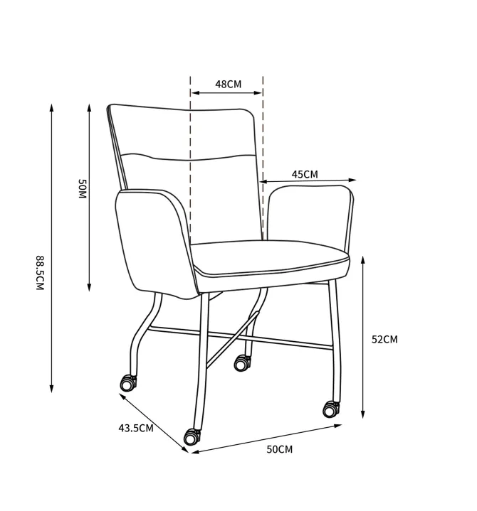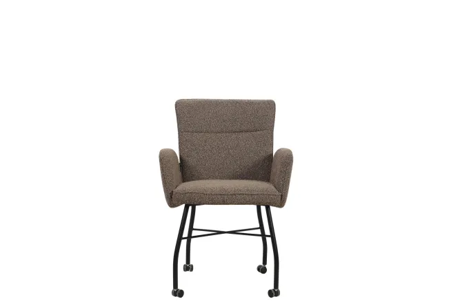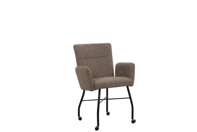 - Eetkamerstoel met armleuningen en wieltjes, met stof van uitstekende kwaliteit