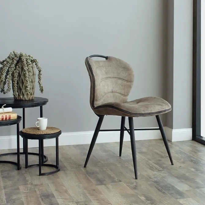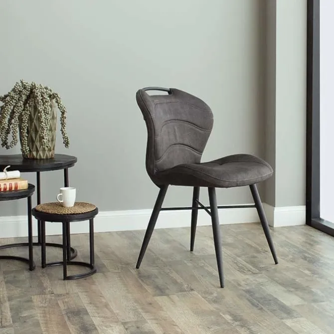Een prachtige eetkamerstoel met niet enkel een luxueuze uitstraling maar ook met een uitmuntend zitcomfort is de perfecte omschrijving van de Kells chair. De eetkamerstoel is bekleed in het hoogwaardige en onderhoudsvriendelijke Luxor-stof dat verkrijgbaar is in 2 fraaie kleuren die perfect te combineren zijn in elk interieur. Het gedetailleerde stiksel in de rugleuning geeft een unieke en speelse maar toch zeer stijlvolle twist aan de Kells chair. Het onderstel is vervaardigd uit staal met een zwarte powdercoating, dit maakt de stoere industriële uitstraling compleet! Bovenaan de rugleuning is er ook een handvat voorzien waardoor de Kells chair vrij gemakkelijk te verplaatsen is. Deze prachtige eetkamerstoel is een echte aanvulling op ieder interieur.