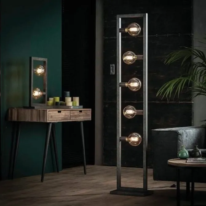 De El Paso Vloerlamp is een unieke metalen vloerlamp met 5 fittingen, waarbij de lichtbronnen echte eyecatchers zijn. De lamp is gemaakt van metalen buizen waarin de stroomkabels zijn verwerkt. Verder heeft de lamp een mooie vintage uitstraling, doordat deze is afgewerkt in oud zilver. Maak het plaatje compleet en combineer deze lamp met de bijbehorende tafellamp!