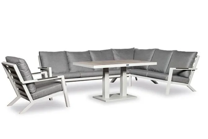 Het aluminium frame is extra stevig en onderhoudsvrij. De armleuningen hebben een mooie polywood afwerking, een houtlook wat zorgt voor een chique uitstraling.