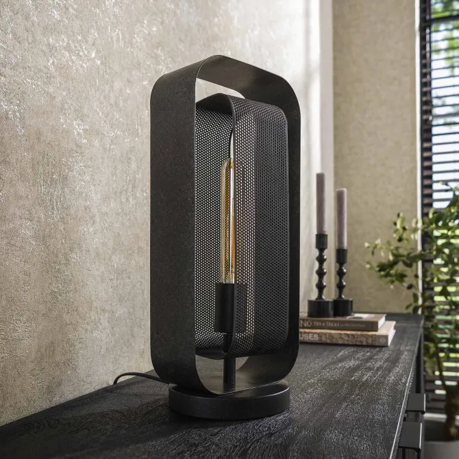 Deze tafellamp Gauze is uitgevoerd in metaal met een zwarte finish. Exclusief lichtbron.