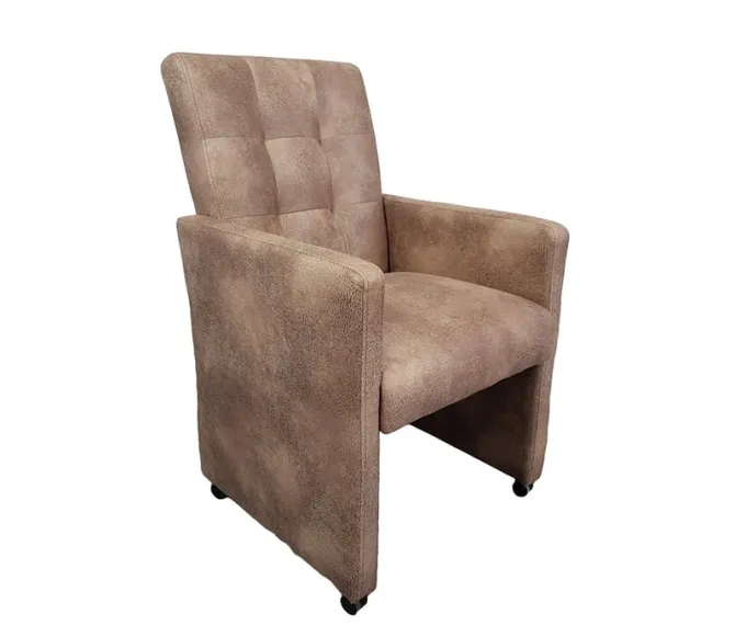 - Eetkamerstoel met armleuningen en wieltjes, met stof van uitstekende kwaliteit