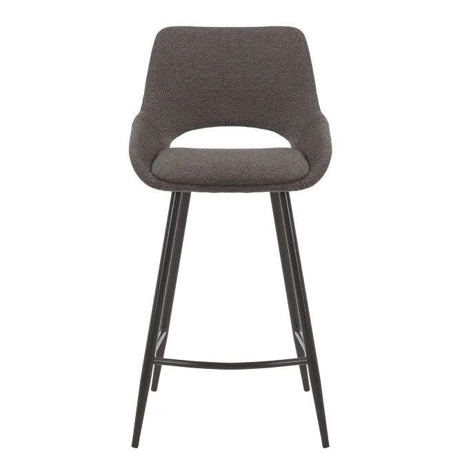 De Latina barkruk combineert een eigentijds design met optimaal zitcomfort. De subtiel gebogen rugleuning met open detail en de zachte bekleding zorgen voor een aangename zithouding. Het slanke metalen onderstel met geïntegreerde voetensteun biedt stabiliteit en een moderne uitstraling. Perfect voor een stijlvolle keuken of bar.