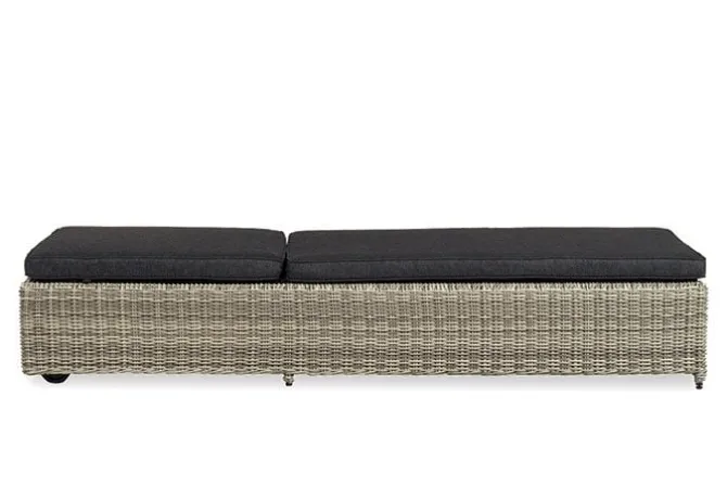 Stoer maar voortreffelijk ligbed. Het lichtgrijze gekleurde wicker, maakt hem passend bij iedere tuinstijl. Voorzien van 2 wielen, waardoor hij gemakkelijk te verplaatsen is.Vind u het heerlijk om een boek te lezen in de zon, maar beschikt u nog niet over een fijn ligbed? Dan is deze stoere, Levisa Sunbed iets voor u! De combinatie van het lichtgrijze wicker, en het donkergrijze kussen zorgt ervoor dat het een echte eyecatcher is in uw tuin! Het loungebed is bestand tegen alle weersinvloeden en heeft dan ook geen onderhoud nodig. Het kussen kunt u het beste opbergen, zodat het niet nat kan worden. Zo blijft deze langer mooi en heeft u er langer plezier van.