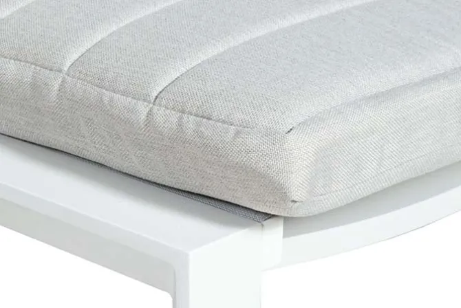 Zeer stijlvol, strak maar uniek ligbed! Wat niet alleen uiterst comfortabel ligt maar ook nog eens geheel onderhouds arm is. Sit back and relax! Dat gaat vast en zeker lukken op deze Altona Sunlounger! Dit ligbed heeft een lengte van 205cm en ligt uiterst comfortabel doordat het liggedeelte voorzien is van lichtgrijs textileen. Dit materiaal vormt zich naar uw lichaam en biedt een hoog comfort waardoor een kussen niet eens nodig is! Daarnaast is het materiaal luchtdoorlatend, zo ligt u ook fijn tijdens de wat warmere zomerdagen. Het witte frame is voorzien van een stevig gepoedercoat aluminium wat onderhoudsvriendelijk en roestvrij is!