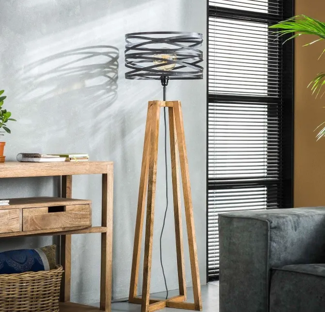 De poot is gemaakt van robuust hout waardoor deze tafellamp een stoere uitstraling heeft. Deze vloerlamp hoort bij de volledige Medina collectie bestaande uit hanglampen, tafellamp en vloerlampen.