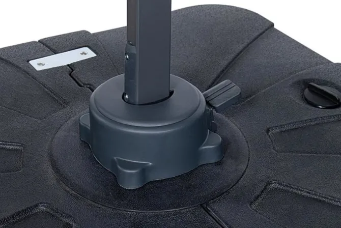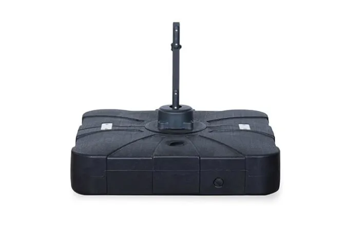 100KG kunststof watertankbasis” – Afmeting: 84x84x18.5cm – Watercapaciteit: 100L – Met kunststof onderdeel vast in het midden – Netto gewicht na vullen met water: 110 KGS – De kleur zwart – Zonder wielen