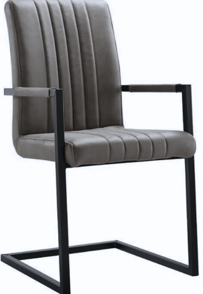 De Paredas armchair combineert stijl en comfort in een verfijnd ontwerp. Met zijn lederlook bekleding en stevige metalen poot is deze stoel niet alleen een blikvanger, maar ook ideaal voor lange, gezellige diners.