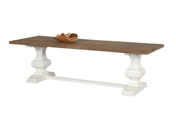De Seraya eettafel straalt klassieke elegantie uit met zijn massieve houten blad en verfijnde afwerking. Deze tafel brengt warmte en charme in elke eetkamer en is ideaal voor liefhebbers van een landelijke stijl.