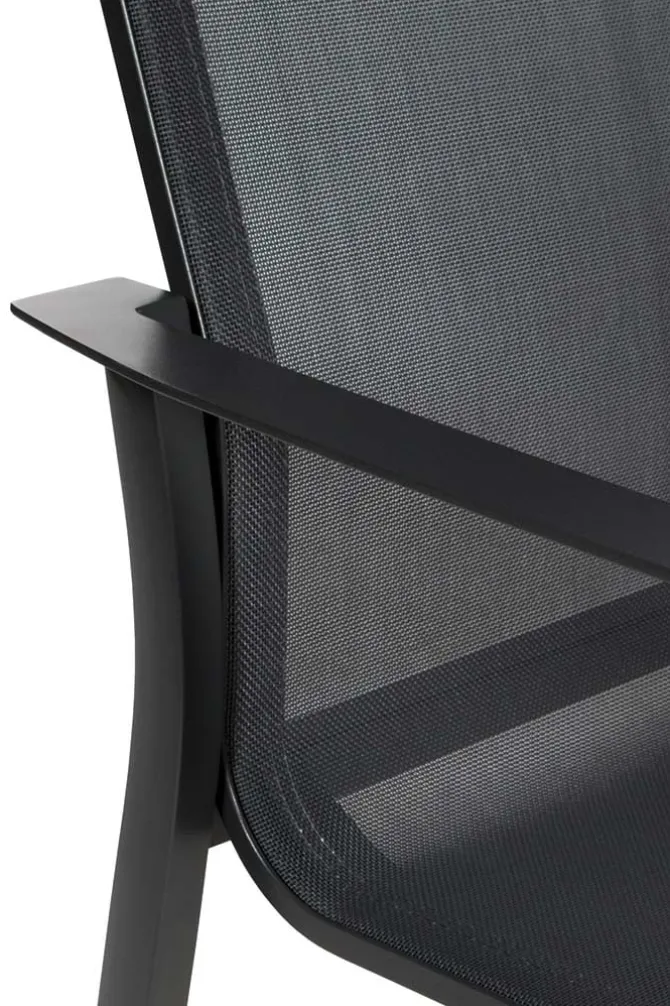 Zeer strakke, stapelbare tuinstoel voorzien van een grijs aluminium frame en een donkergrijze zitting gemaakt van textileen. Vrij van onderhoud en lekker licht van gewicht!Maak uw tuinset compleet met deze stijlvolle Soveria Outdoor Diningchair! Deze stoel is gemaakt van een gepoedercoat aluminium frame, is onderhoudsarm en kan altijd buiten blijven staan. De zitting, gemaakt van textileen biedt een hoog zitcomfort en is eenvoudig en snel droog te maken na een stevige regenbui! Door zijn mooie donkere kleur is het een echte opvaller en is hij ook goed te combineren bij de Centuri Outdoor Diningtable!
