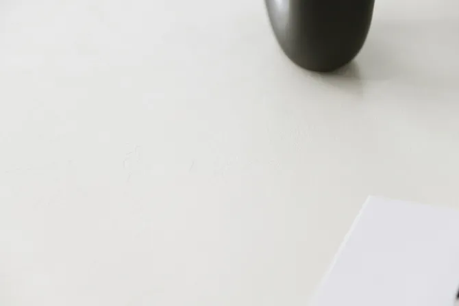 Eetkamertafel Artisano is uitgevoerd in een wit microcement afwerking en heeft een eigentijdse uitstraling met een frisse, moderne look.