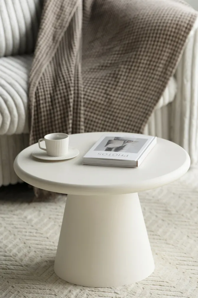 Salontafel Artisano is uitgevoerd in een wit microcement afwerking en heeft een eigentijdse uitstraling met een frisse, moderne look.