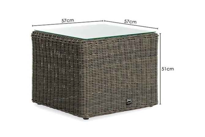Praktische, landelijke, knusse koffietafel. Licht van gewicht, gemakkelijk op te bergen en is eindeloos te combineren! Ben jij telkens gefrustreerd omdat je geen makkelijk bijzettafeltje hebt? Dan is de Bordeaux coffee table zeker een aanwinst! Hij is ideaal doordat hij voorzien is van een glasplaat. Hier kun je met gemak je kopje koffie kwijt, zonder te knoeien! De combinatie van wicker en aluminium zorgen ervoor dat hij tegen alle weersinvloeden kan. De koffietafel wordt geleverd inclusief glasplaat, deze dient u in de winterperiode binnen te halen zodat hij niet stuk kan vriezen.