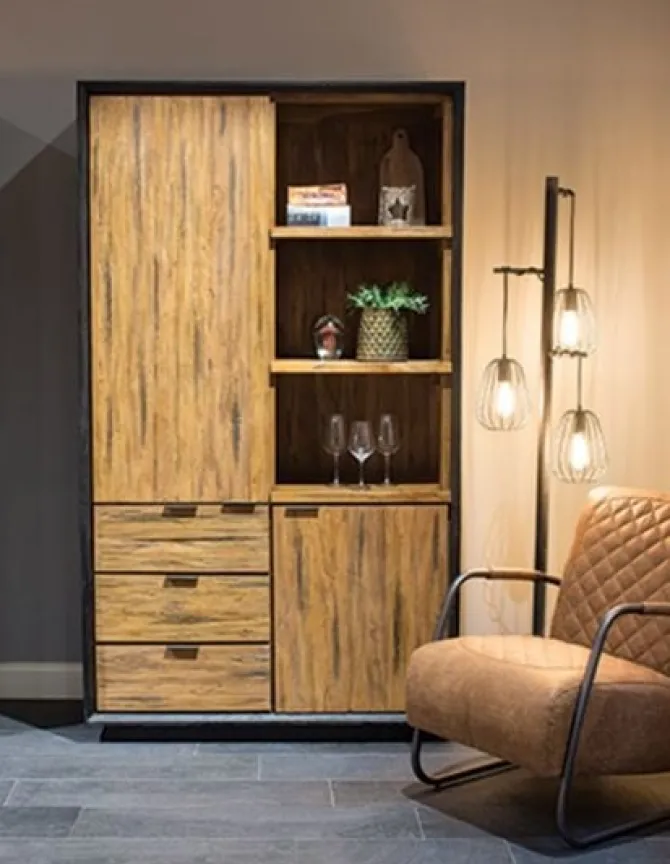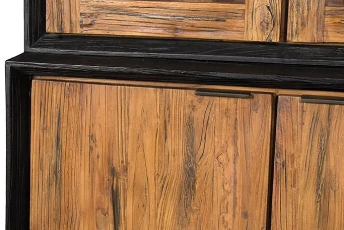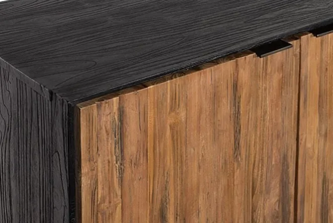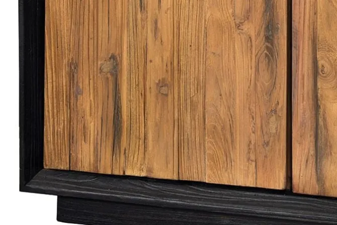 Bent u ook een echte liefhebben van een woonruimte die sfeer en karakter uitstraalt? Dan is de Mountain cabinet de perfecte match voor u! De Mountain cabinet is vervaardigd uit massief geborsteld teakhout, dit geeft de Mountain collectie een warme en sfeervolle uitstraling. De Mountain cabinet voldoet aan de laatste woontrends dankzij het zwart geborstelde teakhouten frame dat in combinatie met het teakhout de collectie een stoer en uniek karakter geeft. De cabinet is niet alleen een echt pronkstuk in uw woonkamer, maar u beschikt ook nog eens over voldoende opbergruimte dankzij de praktische indeling. Er zijn 3 diepe lades voorzien en 2 grote deuren met legplanken, zo kan u voldoende items uit het zicht opbergen. De decoratie stukken die wel gezien mogen worden kan u etaleren in de 3 ruime open vakken.