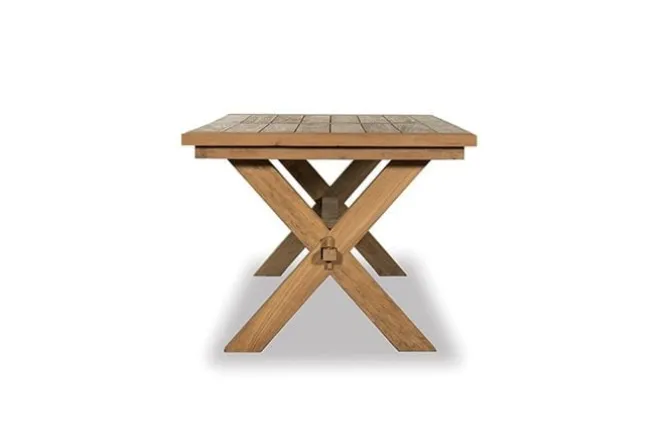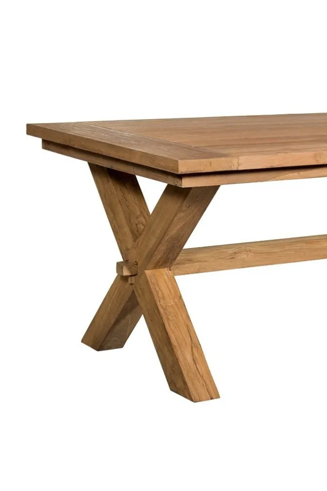 Rechthoekige buitentafel met unieke uitstraling, gemaakt van 100% rustiek doorleefd oud teakhout met stevige massieve kruispoot. De Borneo diningtable is een stevige massiefhouten teak tafel. Door de vervaardiging van de tafel in een origineel doorleefd oud teakhout heeft iedere tafel zijn eigen unieke uitstraling. De extra dikke tafel poten van 10cm x 10cm maken de rustieke looks van deze tafel af. Deze eettafel kan gemakkelijk alle seizoenen buiten blijven staan, doordat hij weersbestendig- en gemakkelijk te onderhouden is. Na verloop van tijd zal de tafel langzaam een platinakleur aannemen, dit komt door het weer en is een typische verwering van teakhout. Om de tafel weer op kleur te brengen of tussentijds te onderhouden, adviseren wij om de tafel te behandelen. Deze robuuste alleskunner is te verkrijgen in maar liefst twee verschillende afmetingen, namelijk: 260cm x 100cm x 77cm en 300cm x 100cm x 77cm