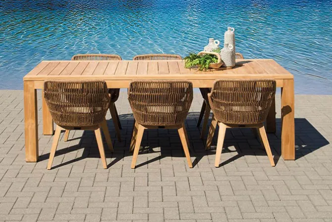 • Het onderstel is afgewerkt met een duurzaam teak hout