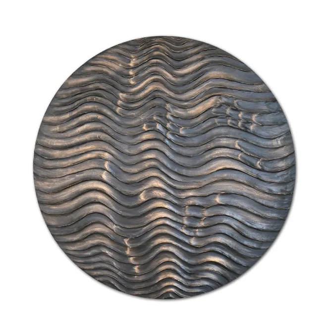 Dit schilderij heeft een waves structuur op een rond canvas van Ø120 cm in een bronze kleur.
