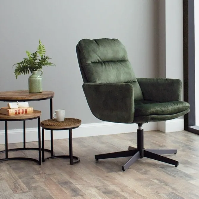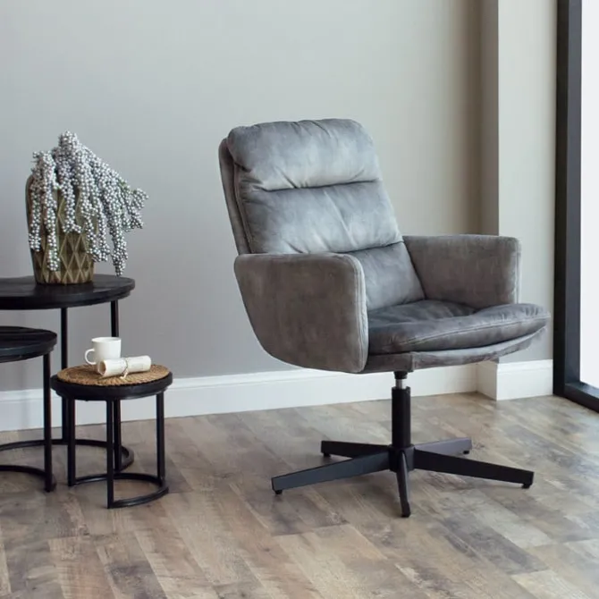 De fauteuil is voorzien van een velvet bekleding met een stevige draaibare basis, waardoor u gemakkelijk van richting kunt veranderen. Dit maakt het ideaal voor gesprekken, televisiekijken of gewoon ontspannen.