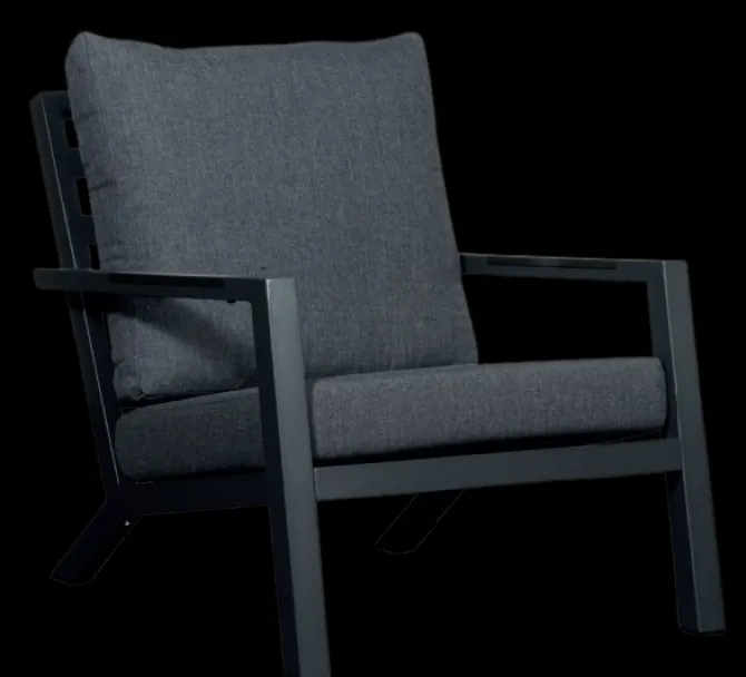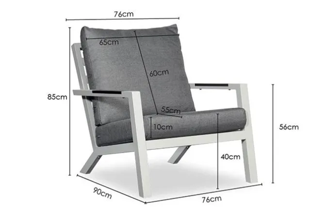 Moderne fauteuil gemaakt van een gepoedercoat aluminium frame, goed gevulde loungekussens. Vrij van onderhoud, roestvrij en makkelijk te verplaatsen.