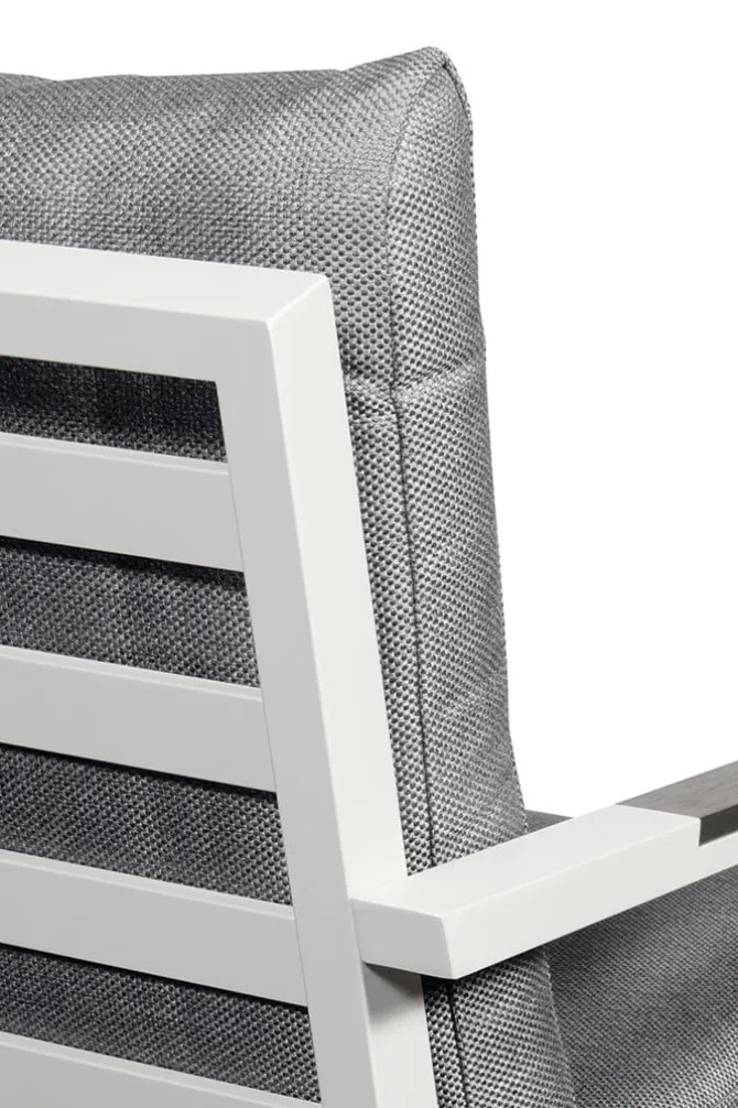 Het aluminium frame is extra stevig en onderhoudsvrij. De armleuningen hebben een mooie polywood afwerking, een houtlook wat zorgt voor een chique uitstraling.