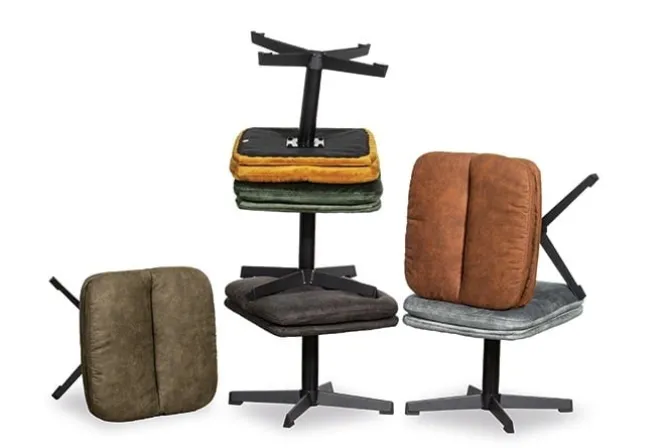 De hocker is verkrijgbaar in 3 kleuren en te combineren met verschillende bijpassende draaifauiteuils: