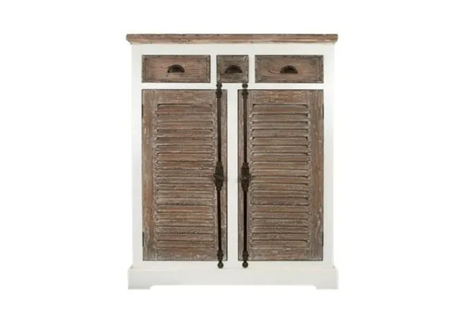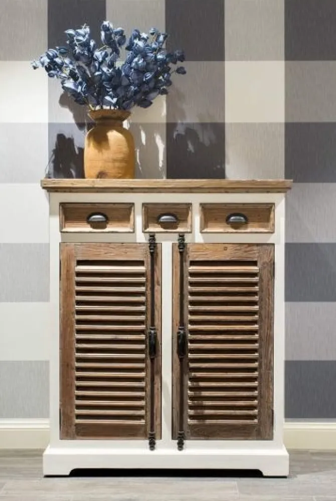 Het romantische design van deze commode in combinatie met zijn landelijke uitstraling maakt van deze commode een echte eye-catcher in ieder interieur. De elegante commode is vervaardigd uit massief grenenhout. Men kan het grenenhout herkennen aan het prachtige lijnenspel met noesten en windscheurtjes. Het grenenhout is afgewerkt met een greywash om het typerende lijnenspel nog eens extra te benadrukken. Dit maakt dat de Martinique commode een echte aanwinst is in ieder interieur! De combinatie tussen het wit en de bruine deuren maakt de eigentijdse en landelijke uitstraling compleet! De commode is niet enkel een pronkstuk in uw interieur maar is ook nog eens zeer praktisch. Dankzij de ruime deuren met daarin een legplank, beschikt u over voldoende opbergruimte. Ook zijn er 2 diepe lades voorzien waarin u een aantal items discreet kan opbergen. Alle deuren zijn voorzien van een gedetailleerd handvat waarmee u de deuren kan vergrendelen. De commode behoort tot onze Martinique collectie.