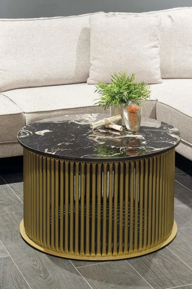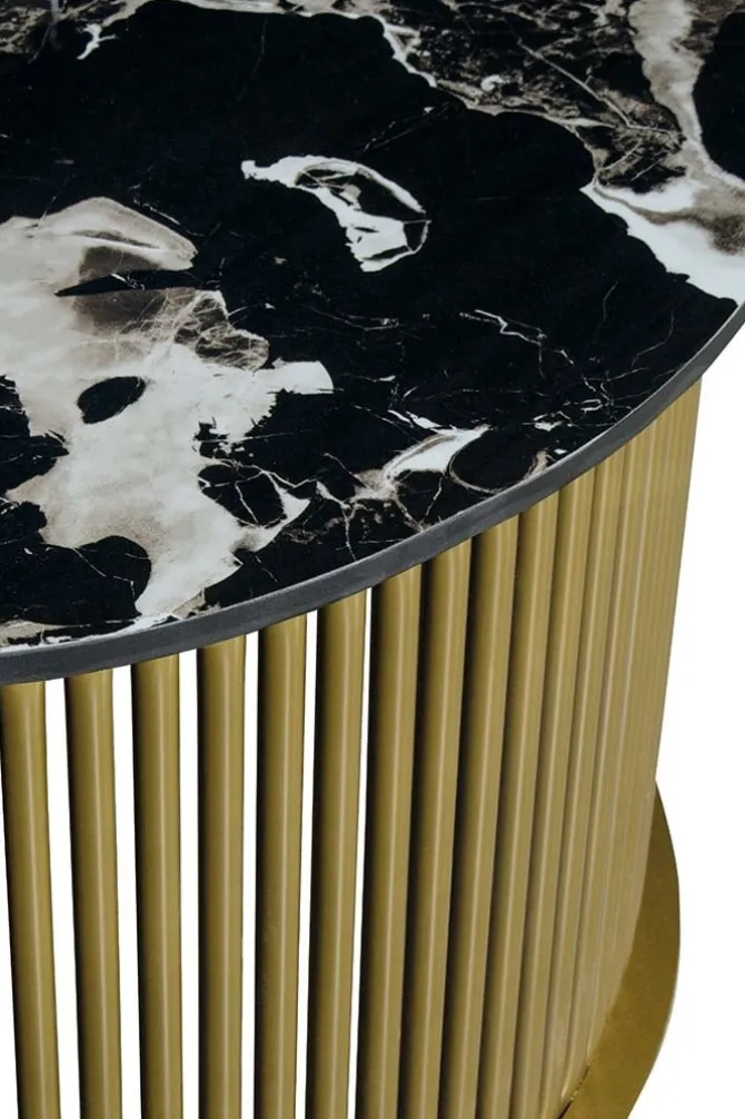Voeg een vleugje luxe toe aan uw woonkamer met de Koffietafel Emparador van PACO World Collections. Deze prachtige koffietafel is een meesterwerk van design en functionaliteit en zal uw zithoek verheffen tot een stijlvolle ruimte. De Koffietafel Emparador is vervaardigd uit hoogwaardige materialen en biedt duurzaamheid en elegantie. Het tafelblad is gemaakt van Emparador marmer, dat bekend staat om zijn verfijnde uitstraling en unieke aderpatronen. Dit maakt elke tafel uniek in zijn soort. Het slanke metalen onderstel voegt een eigentijds element toe aan het ontwerp en zorgt voor stabiliteit. De combinatie van marmer en metaal creëert een tijdloze esthetiek die past bij verschillende interieurstijlen. Met zijn royale afmetingen biedt de Koffietafel Emparador voldoende ruimte voor koffiekopjes, boeken en decoratieve items. Het is het perfecte centrale punt voor gezellige bijeenkomsten met vrienden en familie. Breng nu de Koffietafel Emparador van PACO World Collections in huis en voeg een vleugje verfijning toe aan uw woonkamer. Bestel vandaag nog en ontdek de schoonheid en klasse die deze tafel aan uw interieur brengt.