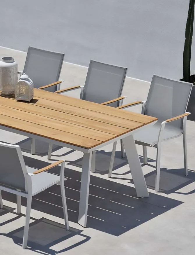• Met teakhouten armleuning