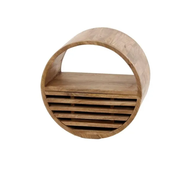 Dit wandschap Monsa is uitgevoerd in mangohout met een zandkleurige finish. De latjes in de lade geven het een ambachtelijke, maar eigentijdse uitstraling.