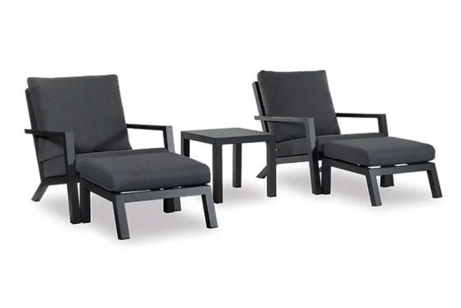 De relax-set heeft een strakke uitstraling. Het aluminium frame is extra stevig en onderhoudsvrij. De armleuningen hebben een mooie polywood afwerking, een houtlook wat zorgt voor een chique uitstraling.