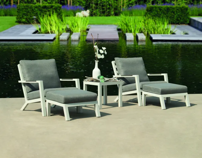 De relax-set heeft een strakke uitstraling. Het aluminium frame is extra stevig en onderhoudsvrij. De armleuningen hebben een mooie polywood afwerking, een houtlook wat zorgt voor een chique uitstraling.