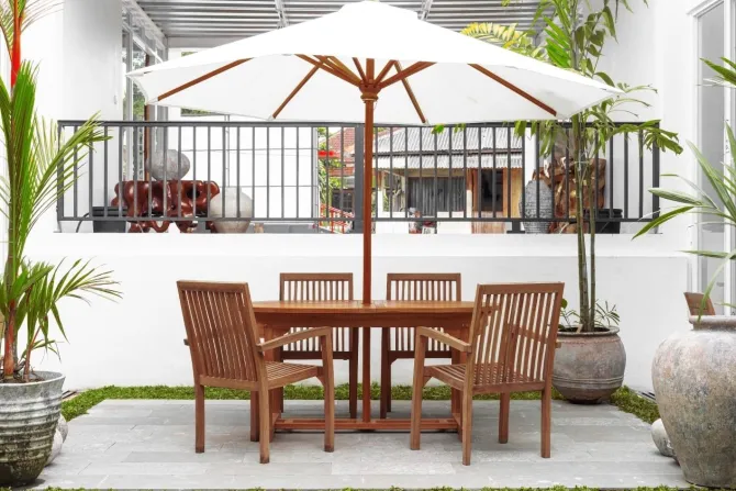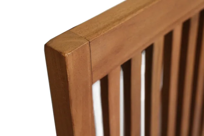 Dankzij het stapelbare ontwerp is de Rinca stoel eenvoudig op te bergen, ideaal voor wie flexibiliteit en ruimtebesparing waardeert. Het teakhout is van nature weerbestendig, waardoor de stoel bestand is tegen diverse weersomstandigheden en jarenlang meegaat.