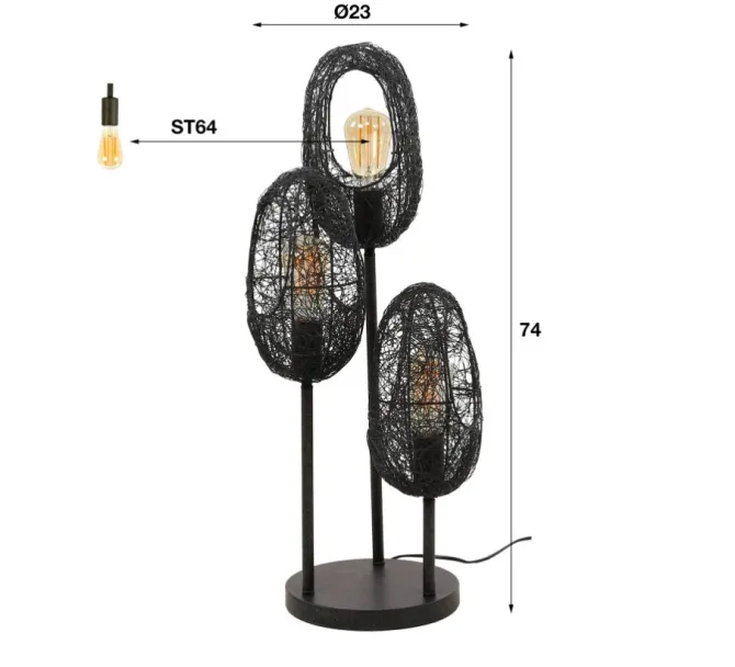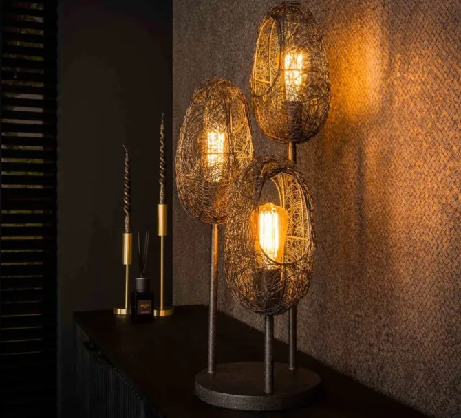 • Deze tafellamp heeft drie halfopen kappen in de vorm van een oog