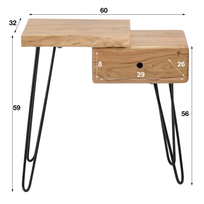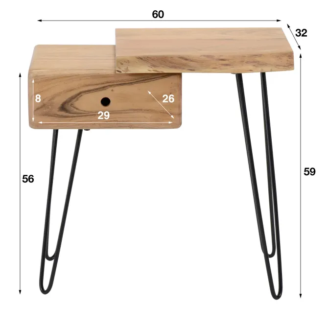 Nachtkastje Shift is gemaakt van acaciahout, afgelakt met een mat transparante lak. De boomstam-vorm zorgt voor een natuurlijke uitstraling.