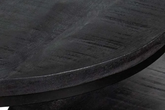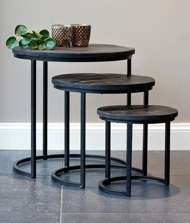 De Sopranos salontafelset combineert elegantie en functionaliteit in één. Deze set van drie tafels, gemaakt van massief hout met een stevig metalen onderstel, straalt een moderne en industriële charme uit.