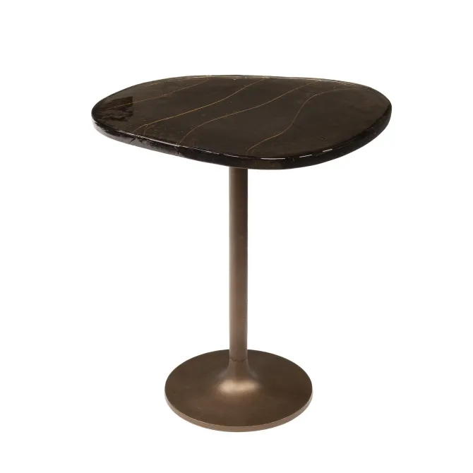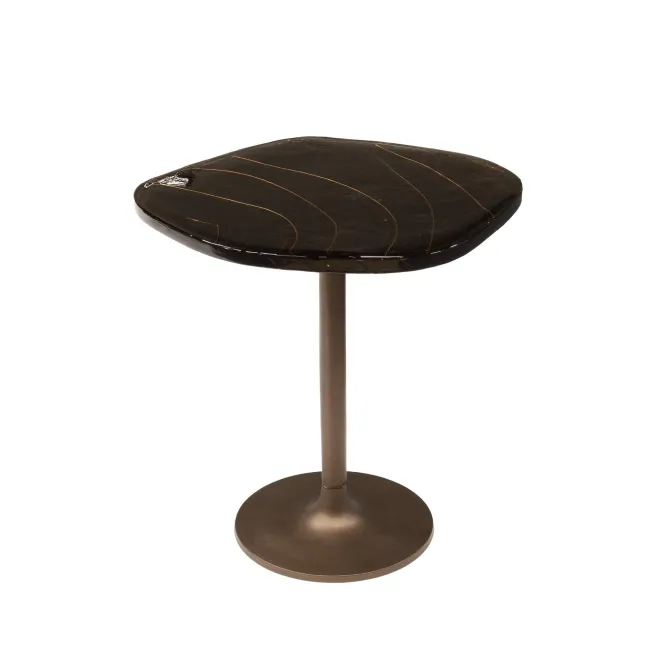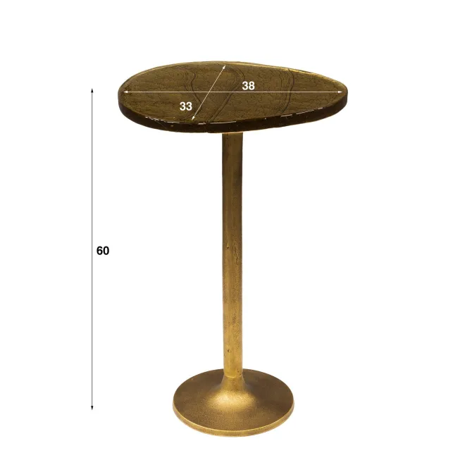 De tafel is verkrijgbaar in twee kleurvarianten: antiek brons en antiek goud. Het metalen onderstel is dan ook afgewerkt in een antiek goud of brons finish, bijpassend bij het blad.