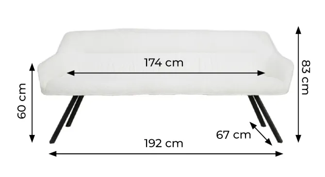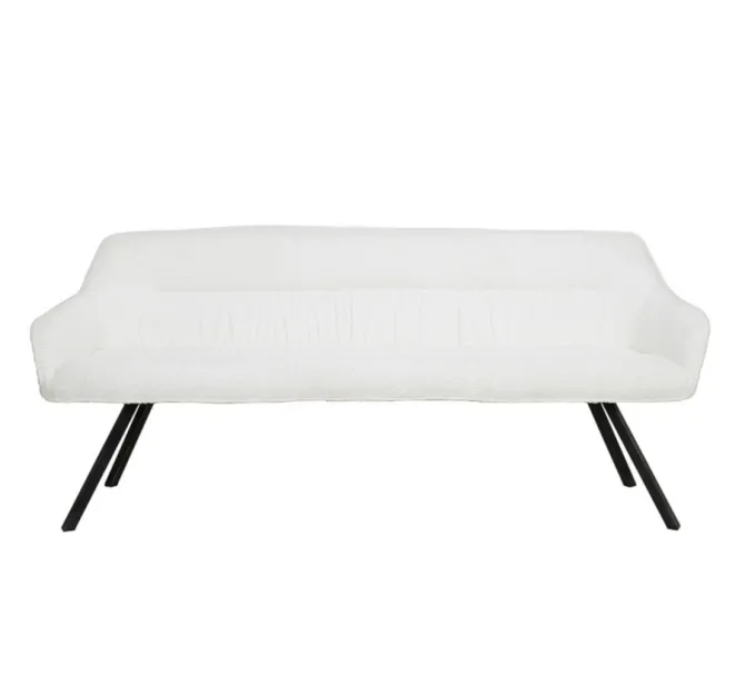 • Deze eigentijdse eetkamerbank is uitgevoerd in bouclé met een metalen frame