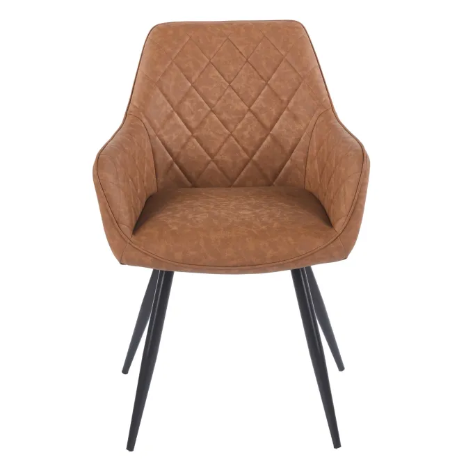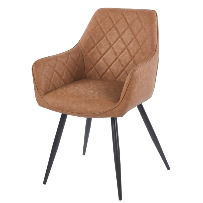 De Zora eetkamerstoel combineert stijl en comfort in een verfijnd ontwerp. Met zijn lederlook bekleding en stevige metalen poten is deze stoel niet alleen een blikvanger, maar ook ideaal voor lange, gezellige diners.
